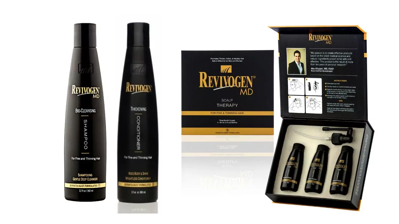 Revivogen's revolutionary Scalp Therapy, Bio-Cleansing Shampoo, and Thickening Conditioner are all part of a dermatologist-formulated system designed to deliver optimal results.