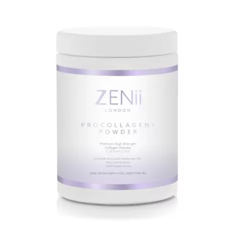 - Zenii Pro Collagen Powder is a 300-g powder product for 30-day consumption. The pack is equipped with a measuring spoon; one portion is per day. Powder is perfect for dissolving in juices or smoothies. Marine collagen is easily absorbed by cells and tissues, improving the epidermis, its elasticity and firmness, and postponing premature aging. Amino acids are added to the content to pump the body and make the product more powerful and useful.