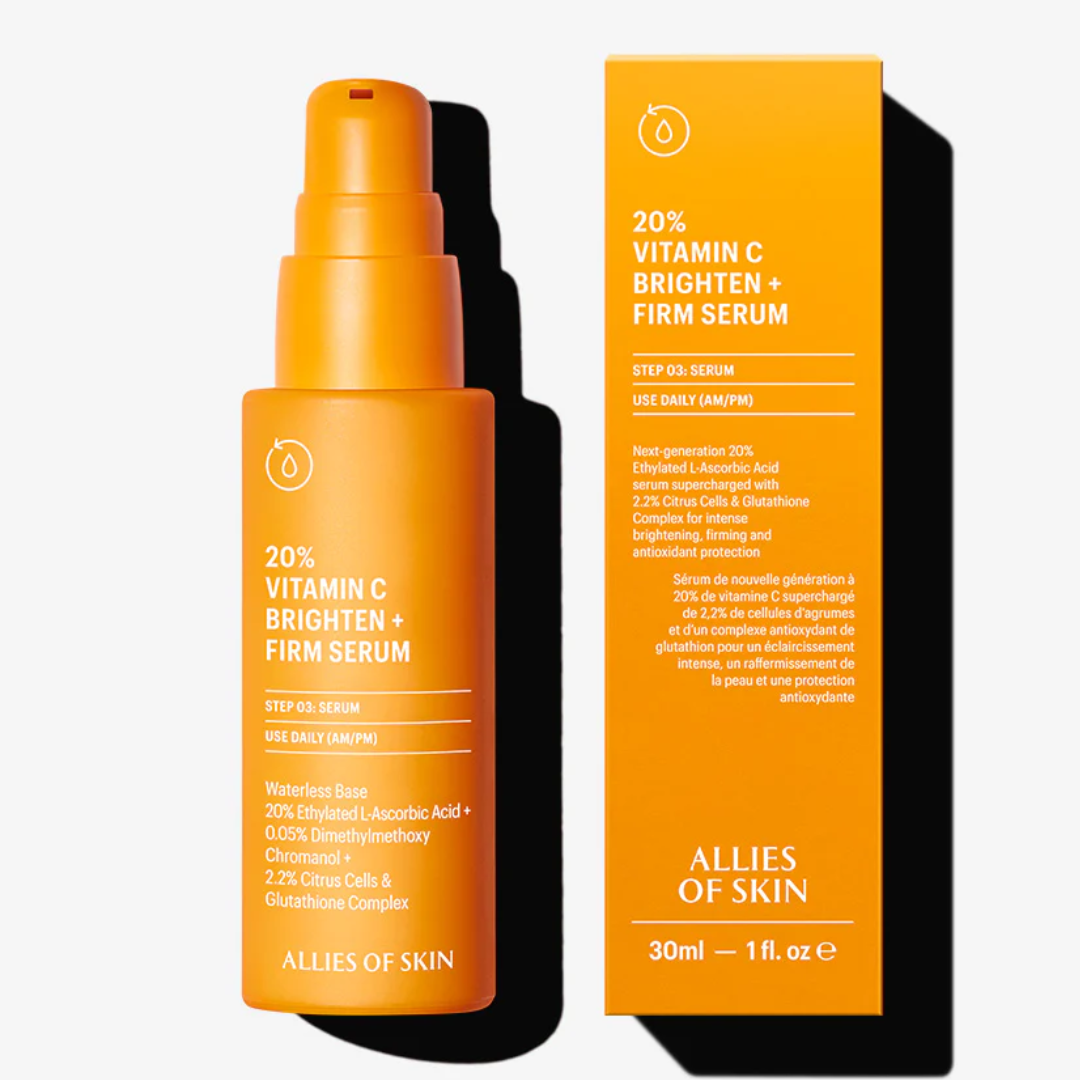 Dermoi skin scientists selected Allies of Skin 20 Vitamin C Brighten Firm Serum for its potent 20% ethylated Vitamin C formula, clinically proven to boost collagen, even tone, and protect against oxidative damage—delivering exceptional results in fewer steps.