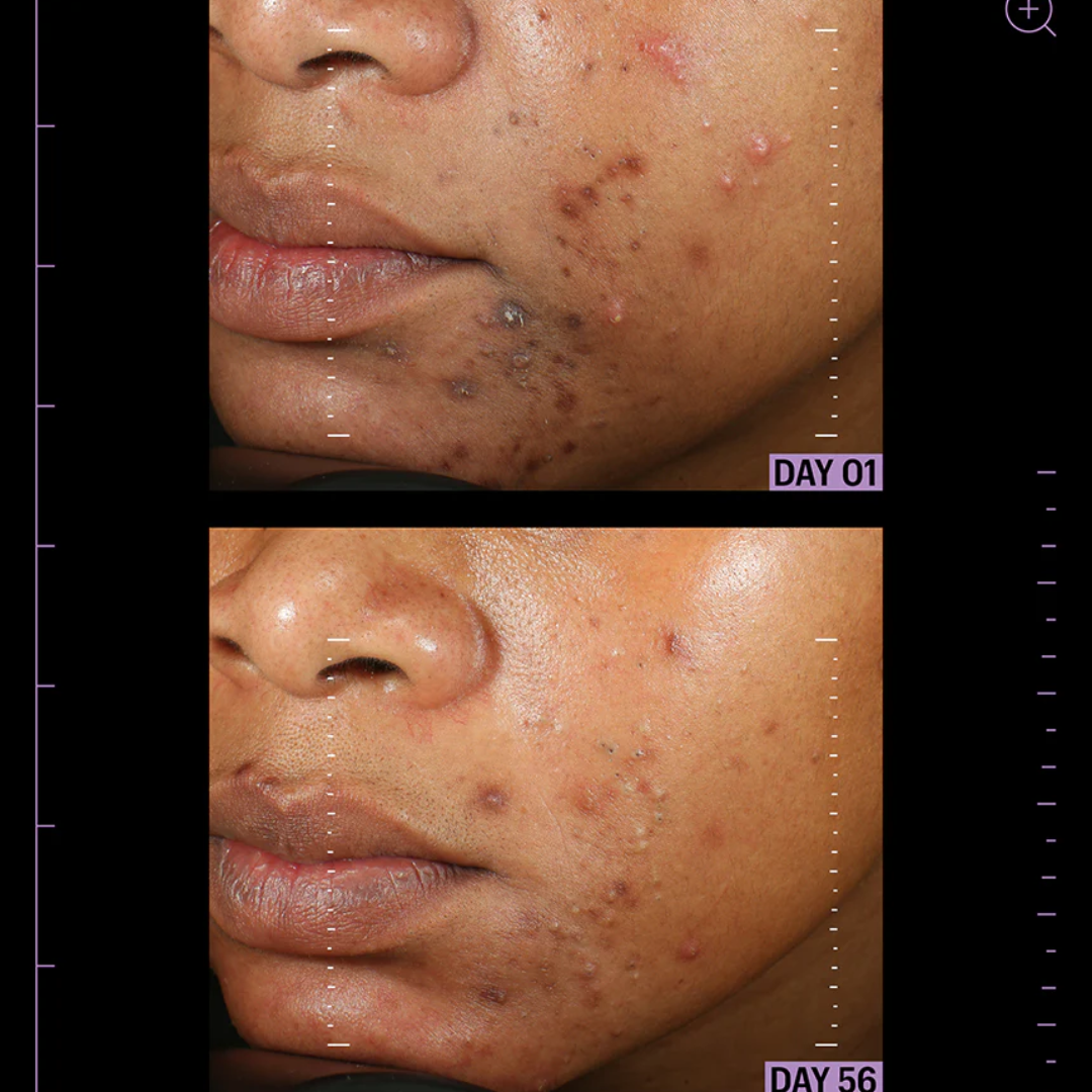 Clinical results show 33% clearer skin in 1 month when used daily.