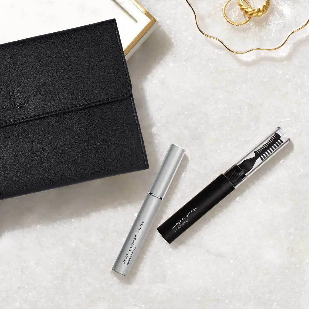 The RevitaLash Beauty Collection Kit features both the RevitaLash Advanced Eyelash Conditioner and the RevitaLash Hi-Def Brow Gel-Clear.