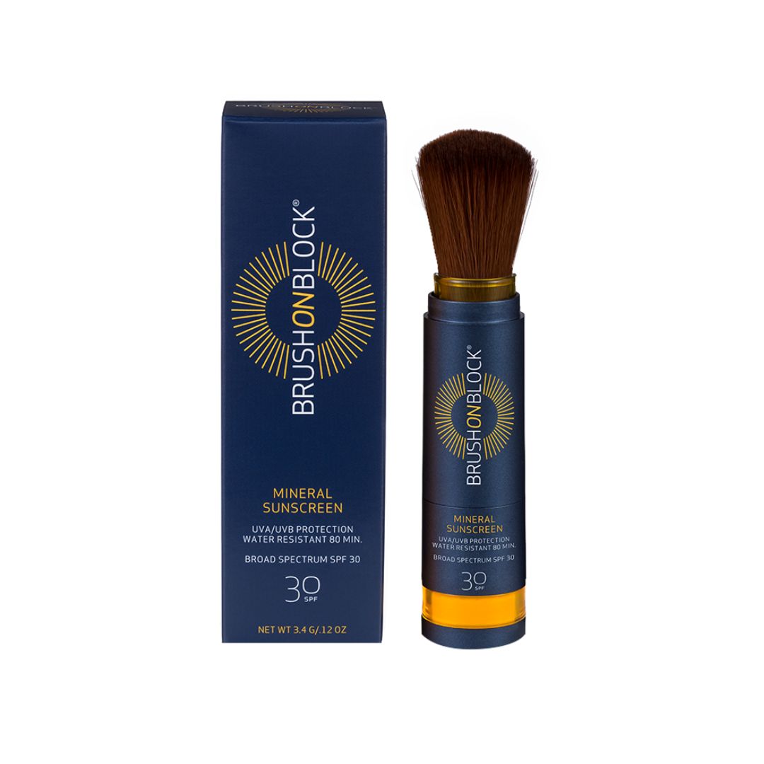 Brush On Block SPF 30 Mineral Sunscreen ingredients include titanium dioxide and zinc oxide as active mineral sunscreens. It is free of chemical sunscreen agents like oxybenzone and octinoxate, and is also paraben-free, vegan-friendly, and reef-friendly.