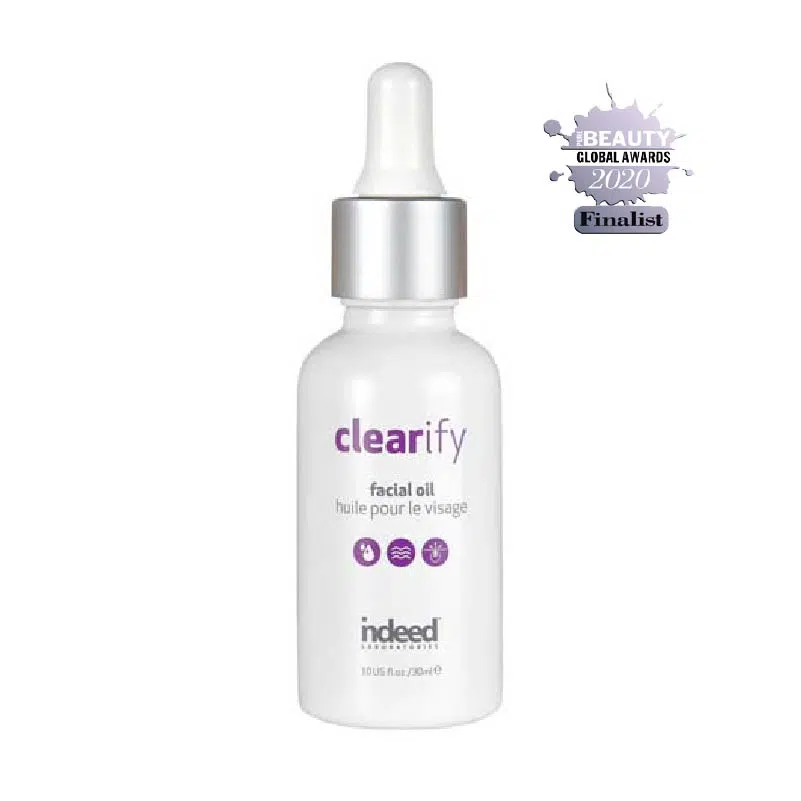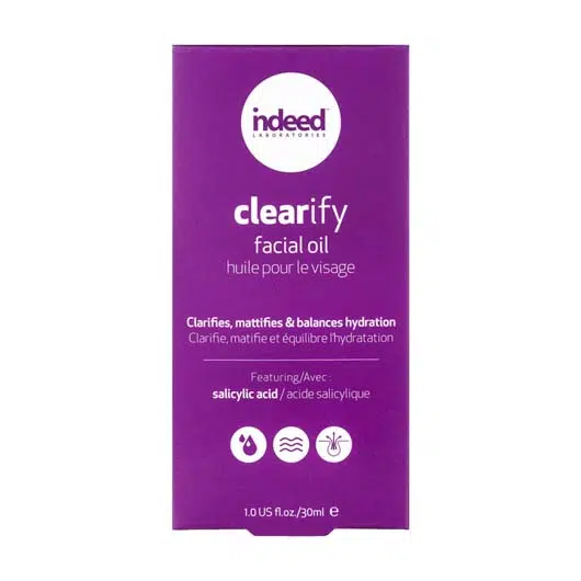 Indeed Labs Clearify Facial Oil gently balances oil production, while calming inflammation and removing cellular debris that can clog pores.