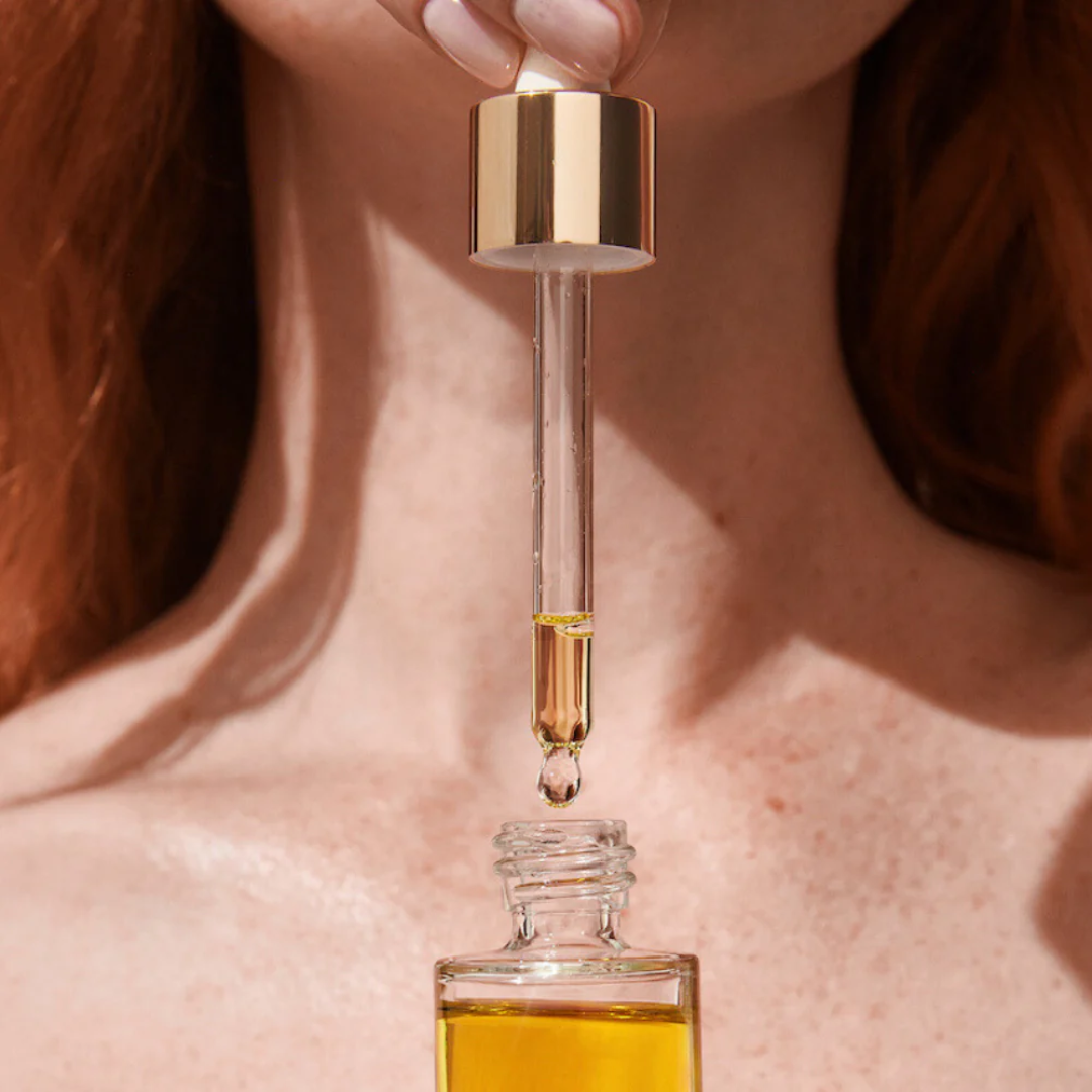 Warm 3–5 drops in your palms and press gently onto cleansed face, neck, and décolletage. Use daily or as needed.