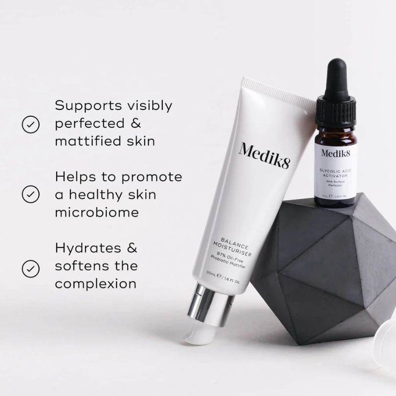 Medik8 Balance Moisturiser & Glycolic Acid Activator: Oil-Free, Mattifying Duo