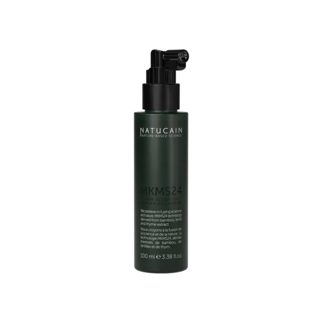 Key ingredients of Natucain Hair Activator Growth Serum include MKMS24, derived from bamboo, thyme, and lentil extracts, known for their ability to activate hair growth directly at the hair root.