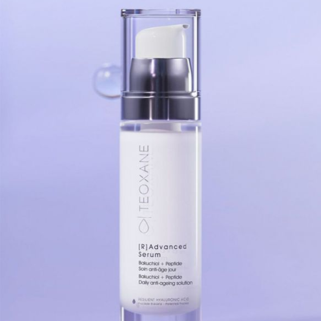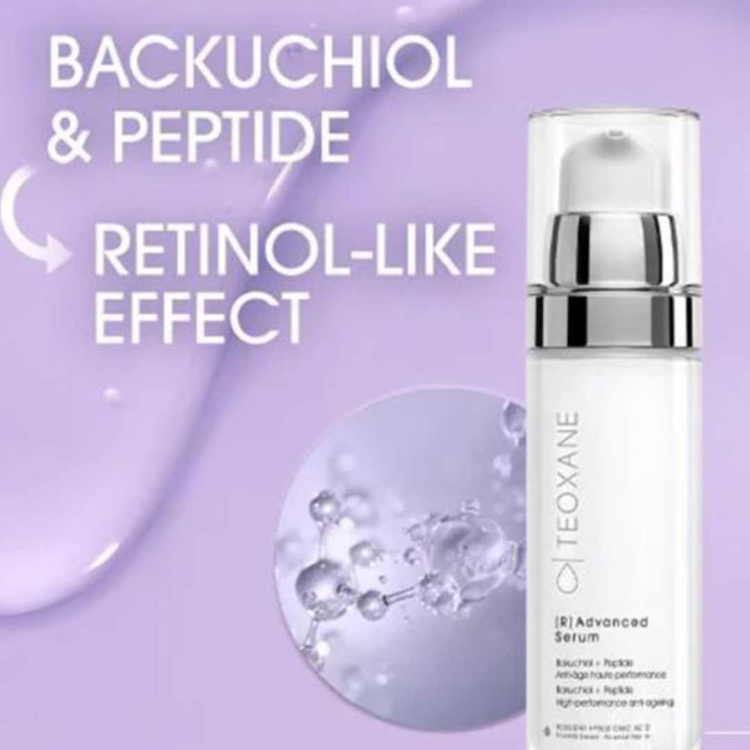 Teoxane [R] Advanced Serum offers retinol-like results without irritation. Its innovative formula combines Bakuchiol, a retinol-mimicking complex that stimulates collagen, with peptides to support skin renewal.