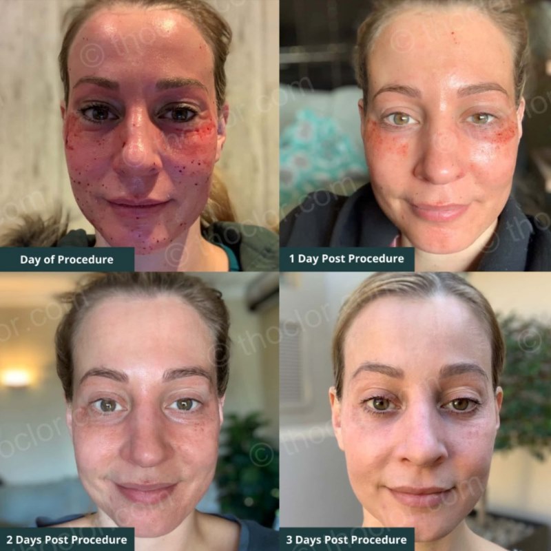 Once your skin has fully recovered and healed, return to your regular Thoclor GF2 routine for morning and evening skincare. Prior to your next procedure or treatment, use Thoclor GF1 again following the same pre-treatment application process.