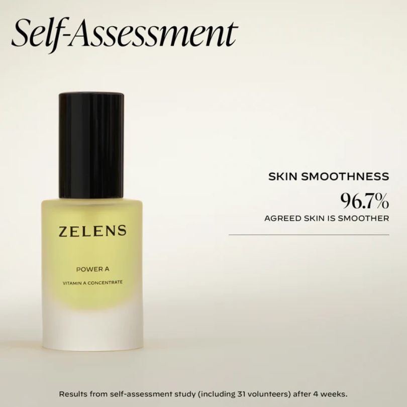 Dermoi skin scientists selected Zelens Power A Serum for its advanced formulation combining liposome-encapsulated retinol and retinoid esters, offering potent anti-aging benefits while minimizing irritation.