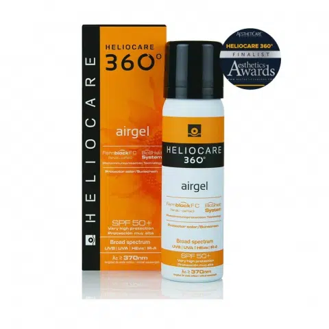 - Heliocare 360 Air Gel SPF50+ is an effective sunscreen for problem skin. The product protects cells from free radicals, sunlight, and all sorts of UV radiation. By applying it on the face, it does not form a sensible film, perfectly melting and absorbing. Besides, it hydrates cells and causes antioxidant protection. Its formula is rich in Fernblock FC, Ferulic acid, Vitamins C and E, and natural extracts, which provide sufficient nourishment.